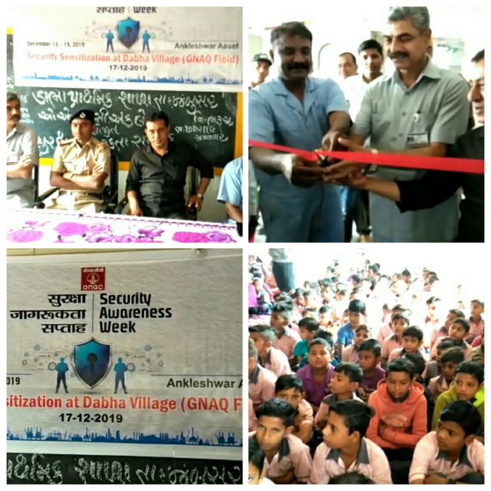 અંકલેશ્વર ઓએનજીસી એસેટ દ્વારા ભરૂચના જંબુસર તાલુકાના ડાભા ગામની પ્રાથમિક શાળામાં સુરક્ષા જાગૃતિ અભિયાન અંતર્ગત એક કાર્યક્રમ યોજાયો હતો. ૨૦૦૧ માં સંસદ ભવન પર થયેલા આતંકી હુમલામાં જે રીતે આતંકીઓનો પ્રતિકાર કરવામાં આવ્યો હતો. તેની સ્મૃતિમાં ઓએનજીસી દ્વારા દર વર્ષે 13 મી ડિસેમ્બરથી 19 મી ડિસેમ્બર દરમિયાન સુરક્ષા જાગૃતિ સપ્તાહની ઉજવણી કરવામાં આવે છે. ઓએનજીસી દ્વારા તેના કાર્યક્ષેત્રના ગામોમાં સુરક્ષા જાગૃતિ અંગે સિક્યુરિટી દ્વારા કાર્યક્રમનું આયોજન થતું હોય છે.કાર્યક્રમમાં ઉપસ્થિત સિક્યુરિટી મેનેજર આશુતોષ ત્રિવેદીએ સંબોધન કરતા જણાવ્યું હતું કે ગામમાં ખેતરોમાં કોઈ અજાણી શકમંદ વ્યક્તિઓની હિલચાલ પર નજર રાખી ત્વરિત સરપંચ કે ઓએનજીસીના નજીકના અધિકારીને જાણ કરવા સુરક્ષાલક્ષી પેમ્પલેટનું વિતરણ કરી જાગૃતિ અંગે ખાસ તાકીદ કરી હતી. કાર્યક્રમમાં વેડચ પોલીસ મથકના પોલીસે સબ ઇન્સ્પેક્ટર વિ.આર પ્રજાપતીએ ઉપસ્થિત ગ્રામજનો તથા શાળાના બાળકોને સુરક્ષાલક્ષી જાણકારી પુરી પાડી હતી. કાર્યક્રમમાં ઓએનજીસી સિક્યુરિટી મેનેજર આશુતોષ ત્રિવેદી, જંબુસરના જીજીએસના ઇન્સ્ટોલેશન મેનેજર ફર્નાન્ડિસે સમગ્ર કાર્યક્રમનું સફળ સંચાલન કર્યુ હતું. આ પ્રસંગે ડાભા ગામના સરપંચ શબ્બીર ભટ્ટી આલમ જીજીએસ ઇન્સ્ટોલેશન મેનેજર બ્રાન્ડની સહિત એસ.એમ.સી સદસ્યો તથા ગ્રામજનો ઉપસ્થિત રહ્યા હતા.