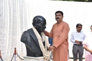 જામનગર મહાનગરપાલિકા દ્વારા મહાત્મા ગાંધીની જન્મ જયંતી નિમિત્તે ગાંધીજીની પ્રતિમાને સુતરની આંટી પહેરાવવાનો કાર્યક્રમ યોજાયો