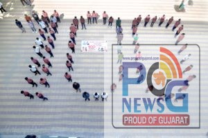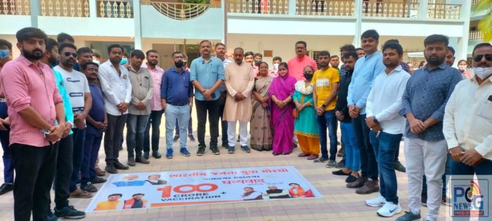 સમગ્ર ભારતમાં કોરોના વેકસીનેશનનો આંકડો ૧૦૦ કરોડને પાર થતા જામનગર ભારતીય જનતા યુવા મોરચા અને જામનગર મહાનગરપાલિકા દ્વારા વિદ્યાર્થીઓને સાથે રાખી ૧૦૦ નો આંકડો બનાવી અભિવાદન કાર્યક્રમ રાખવામાં આવ્યો હતો.
