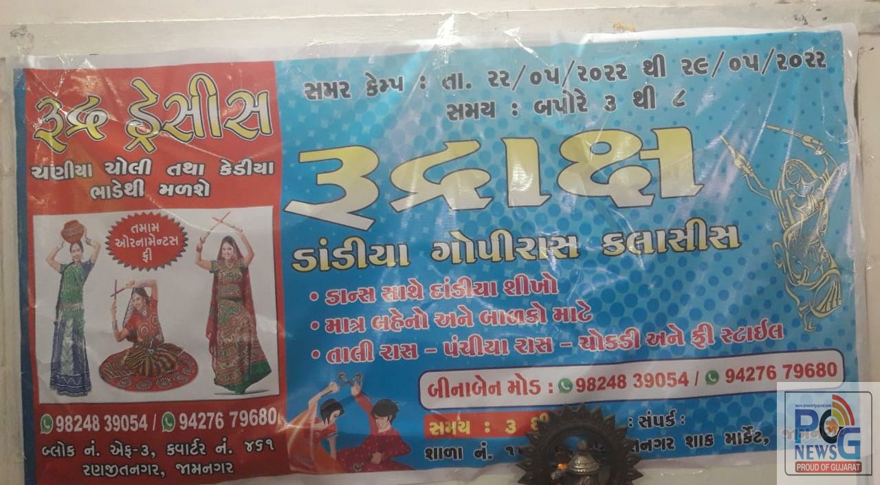 જામનગરમાં રુદ્રાક્ષ દાંડિયા ક્લાસીસ દ્વારા વિનામૂલ્યે બાળકો તેમજ મહિલાઓને ઉનાળુ વેકેશન નિમિતે વિવિધ પ્રકારના દાંડિયાની તાલીમ બીનાબેન મોડ દ્વારા આપવામાં આવે છે.
