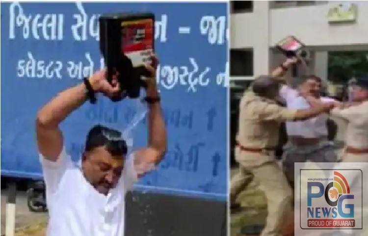 જામનગરમાં લમ્પી વાયરસ છેલ્લા દોઢ મહિનાથી હાહાકાર મચાવી રહ્યો છે. એક તરફ ગૌવંશના મોતની હારમાળાને અંકુશમાં લેવામાં તંત્ર નિષ્ફળ ગયું છે ત્યારે અને પશુઓમાં 75 ટકાથી વધુના વેકશીનેશનના દાવા થઇ રહ્યા છે ત્યારે વિરોધપક્ષ દ્વારા તંત્રની ખામીઓને તેમજ વાસ્તવિક પરિસ્થિતિને ઉજાગર કરવા માટે આંદોલન ચલાવવામાં આવી રહ્યું છે. ઉપરાષ્ટ્રપતિને આવકારવા માટે મુખ્યમંત્રી આજે જામનગર આવ્યા હતા અને સાથો સાથ તેઓએ સૌરાષ્ટ્રના સૌ પ્રથમ આઇસોલેશન સેન્ટરની મુલાકાત કરી જિલ્લા કલેકટર કચેરી ખાતે શહેર અને જિલ્લાના અધિકારીઓ સાથે આ પ્રશ્ને સમીક્ષા બેઠક યોજી હતી. આ બેઠક ચાલુ હતી તે દરમ્યાન પોલીસ અને સિકયોરીટીને ચકમો આપીને શહેર કોંગ્રેસ પ્રમુખ વિરેન્દ્રસિંહ જાડેજા (દિગુભા) પેટ્રોલ ભરેલ કેન લઇને કલેકટર ઓફિસના અંદરના દરવાજા સુધી પહોંચી ગયા હતા અને અચાનક પોતાના શરીર ઉપર પેટ્રોલ રેડતા બાજુમાં જ ઉભેલ પોલીસ અધિકારી અને કર્મચારીઓ દોડી ગયા હતા અને આત્મવિલોપનનો પ્રયાસ નિષ્ફળ બનાવ્યો હતો. બાદમાં પેટ્રોલનું કેન કબ્જે કરી દિગુભાની ટીંગાટોળી કરીને અટકાયત કરી પોલીસે વેનમાં બેસાડી પોલીસ મથકે લઇ જવાયા હતા. આ ઘટનાને પગલે કલેકટર કચેરીના પરિસરમાં તૈનાત એસ.પી., પ્રાંત અધિકારી સહિતના અધિકારી અને કર્મચારીઓમાં દોડધામ મચી ગઇ હતી.આમ મુખ્યમંત્રીના પ્રવાસ દરમ્યાન બનેલી આ ઘટનાને પગલે લોકલ આઇ.બી. અને પોલીસના બાતમીના નેટવર્ક સામે પણ સવાલ ઉઠયા છે.
