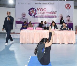 ગુજરાત રાજ્ય યોગ બોર્ડ દ્વારા બે વિભાગમાં સ્પર્ધા યોજવામાં આવી હતી, જેમાં પ્રથમ ક્રમાંક પાસોદરિયા સુભદ્રને શહેર મેયર બીનાબેન કોઠારીએ ગોલ્ડમેડલ પ્રમાણપત્ર અને રૂપિયા 21,000 નો ચેક એનાયત કર્યો હતો, દ્વિતીય ક્રમાંકે કડેચા સુનિલ ને શાસક પક્ષના નેતા કુસુમબેન પંડ્યાએ સિલ્વર મેડલ સર્ટિફિકેટ – 15000 નો ચેક આપ્યો હતો, તૃતીય ક્રમાંકે વિજેતા થયેલા વારોતરીયા લખનને બ્રોન્સ મેડલ સર્ટી અને રૂપિયા 11,000 નો ચેક DEO મધુબેન ભટ્ટે આપ્યો હતો, તેમજ મહિલા વિભાગમાં પ્રથમ ક્રમાંક એ નારણકા માનસી દ્વિતીય ક્રમાંકે રોશની સિંહ અને તૃતીય ક્રમાંકે દયડા શીતલ વિજેતા થયા હતા તેઓને પણ મેયર સહિતના પદાધિકારીઓ કોર્પોરેટરોએ ગોલ્ડ મેડલ સિલ્વર મેડલ અને બ્રોન્સ મેડલ સર્ટી અને ચેક અર્પણ કર્યું હતું. આગામી સમયમાં ઝોન કક્ષાના વિજેતાઓ રાજ્ય કક્ષાની સ્પર્ધા યોજાશે તેમાં યોગ નીદર્શન કરશે.