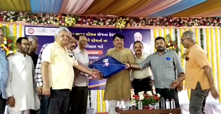 ત્યારબાદ દેશના પી એમ નરેન્દ્ર મોદીએ રિમોટ દબાવી રેલવે સ્ટેશનની શિલાન્યાસ વિધિ કરી હતી. તેઓએ જણાવ્યું હતુ કે ભારત સરકાર દ્વારા દેશના રેલવે સ્ટેશનોના આધુનિકરણ માટે સર્વોચ્ચ પ્રાથમિકતા આપવામાં આવી રહી છે. સાથે સાથે રેલવે સ્ટેશનના પુનઃ વિકાસના કાર્યો માટે સરકાર પ્રતિબદ્ધ હોવાનું જણાવ્યું હતુ. રેલવે સ્ટેશનો પર મુસાફરોને ઉમદા સુવિધા મળી રહે એ માટે પૂરતા પ્રયાસો કરીશું એમ તેઓએ જણાવ્યું હતુ. દેશના રેલવે સ્ટેશનો હવે વિદેશમાં આવેલા રેલવે સ્ટેશન જેવા આધુનિક બનશે એમ તેઓએ જણાવ્યું હતુ.