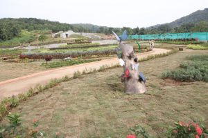 જેમાં રહેલાં રસ્તાઓ આપણને ધમની અને શીરાઓમાંથી પસાર થવાનો અહેસાસ કરાવે છે. આ ઔષધ માનવમાં જુદા જુદા અંગોમાં થતાં રોગોના ઉપચાર માટે વપરાતી જુદી જુદી વનસ્પતિઓ રોપવામાં આવી છે. “આરોગ્ય વન” ની રચના પગથીયા રહિત છે. અહીંની દરેક જગ્યાએ ગોલ્ફકાર્ટ અને વ્હીલચેર જઇ શકે તે વાતનું ખાસ ધ્યાન રાખવાને લીધે આ બગીચામાં લોકસમૂહ અને દિવ્યાંગજનો સરળતાથી હરી ફરી શકે છે. અહીં કમળ તળાવની પણ રચના કરવામાં આવી હોવાને લીધે મુલાકાતીઓને કમળોની પાસે સૂતેલા ઔષધ માનવને નિહાળી રહયા હોય તેવો અહેસાસ થાય છે. ઔષધ માનવ અને કમળથી ભરેલ તળાવ સાથે અહીં ગાર્ડન ઓફ કલર્સ, ઇન્ડોર પ્લાન્ટસ વિભાગ, અરોમા ગાર્ડન, યોગા ગાર્ડન, આલ્બા ગાર્ડન, લ્યુટિયા ગાર્ડન, ડિજિટલ ઇન્ફોરમેશન સેન્ટર, સોવેનીયર શોપ, આરોગ્ય પ્લાન્ટસ શોપ જેવા અન્ય આકર્ષણો ઉપરાંત કાફેટેરીયા ખાતે પ્રવાસી-મુલાકાતીઓ ઔષધીય ગુણવત્તા ધરાવતા આહાર તેમજ ખાટી ભીંડી જેવા સરબતનું પાન કરી શકે છે. કાફેટેરીયા, ઓર્ગેનિમ પોર્ટ પ્લાન્ટ, માટસના વાસણો વગેરે સહિત ઔષધીય ચીજવસ્તુઓની બનાવટ અને તેનું વેચાણ તેમજ ગોલ્ફ કાર્ટનુ ડ્રાઇવીંગ વગેરેનુ સ્થાનિક સ્વસહાય જુથની બહેનો દ્વારા સંચાલન કરાય છે. વન વિભાગ દ્વારા આ સ્વસહાય જુથોની બહેનોને વન વિભાગે વ્યવસાયની તક પૂરી પાડીને તેમના આર્થિક ઉર્પાજનમાં સહાયરૂપ બન્યુ છે. મનમોહક પ્રાદેશિક સંગીત સાથે અહીંનો પ્રવેશદ્વાર “સૂર્ય નમસ્કાર”ની બાર મુદ્રાઓથી સુશોભિત છે. ડિજિટલ ઇન્ફોર્મેશન સેન્ટરમાં રોજીંદા જીવનમાં વનસ્પતિઓનું મહત્વ અને આપણા આયુર્વેદના વારસોને વિવિધ દ્રશ્ય શ્રાવ્ય પદ્ધતિથી ઉજાગર કરવાનો પ્રયત્ન કરવામાં આવેલ છે. અહીં ઇ-પોસ્ટર અને મુવી દ્વારા આરોગ્ય અને ઔષધિય વનસ્પતિઓની તમામ માહિતી પીરસવામાં આવી છે. અહીંના ગાર્ડન ઓફ કલર્સમાં અલગ-અલગ રંગના ફૂલ-પત્તાનો સમાવેશ કરેલ છે, જે અહીંના રંગબેરંગી સૌદર્યમાં વધારો કરે છે. અહીનું અદભૂત સૌંદર્ય પ્રવાસી-મુલાકાતીની દ્રષ્ટિને જાણે બાંધી રાખે છે. અહીંના ઇન્ડોર પ્લાન્ટસ વિભાગ પણ ઉભો કરાયો છે. જે ઘરની અંદરના ભાગની સુંદરતા વધારવા પર ભાર આપે છે. ઘરમાં રાખેલ વનસ્પતિઓ ઘરના વાતાવરણને શુધ્ધ અને શાંત રાખે છે.