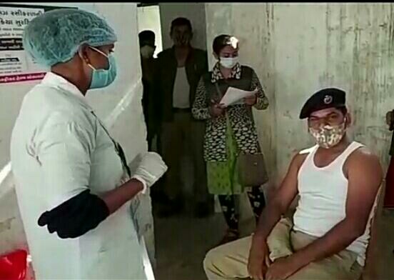 કેવડિયા કોલોની ખાતે એસ.આર.પી. જવાનોને કોવિડ-19 રસી મૂકવામાં આવી.
