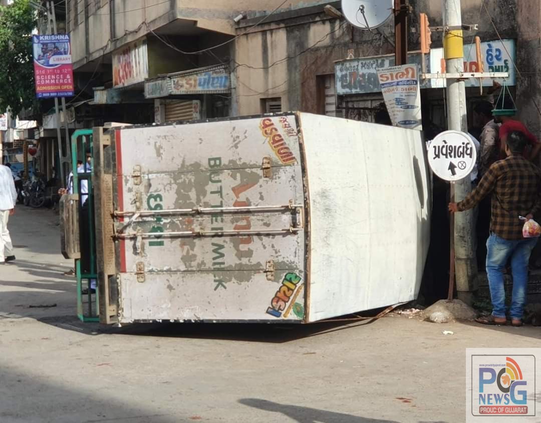 ખંભાળિયા શહેરમાં આજરોજ સવારે એક દૂધ વાહન અકસ્માતે પલટી ગયાનો બનાવ બન્યો હતો. જોકે આ અકસ્માતમાં ખાસ કંઈ નુકસાની થઈ ન હતી.