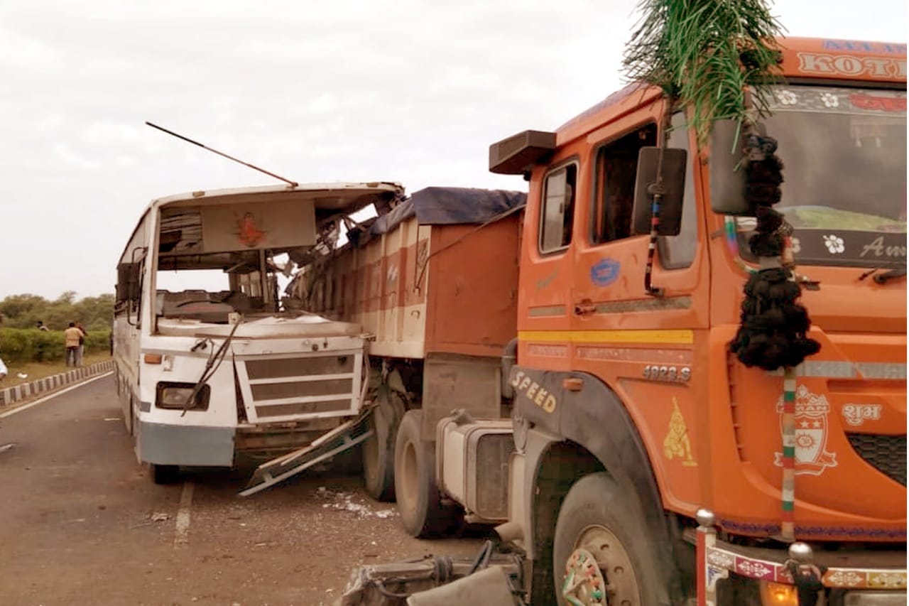 આજે સવારે કઠલાલના અનારા પાસે બસ અને ટ્રક વચ્ચે અકસ્માત સર્જાયો હતો. GJ 18 Z 3754 નંબરની એસટી બસ જામનગરથી ઝાલોદ તરફ જઈ રહી હતી. ત્યારે અમદાવાદ ઇન્દોર હાઇવે પર કઠલાલ પાસે બસને અકસ્માત નડ્યો હતો. બસ આગળ ટ્રકની સાથે અથડાઈ હતી. જેથી ટ્રકની પાછળ એસટી બસ ઘૂસી જતા અકસ્માત સર્જાયો હતો. આ અકસ્માત એટલો ગંભીર હતો કે બસનો ખાલી સાઈડનું પડખુ ચીરાઈ ગયું હતું. બસનો આગળનો ભાગ ટ્રકમાં ઘૂસી ગયો હતો.