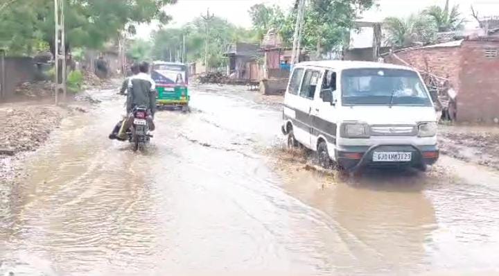 લીંબડીના ઉંટડી ગામના રોડ પર વરસાદી પાણી ભરાતાં ગ્રામજનોને હાલાકી