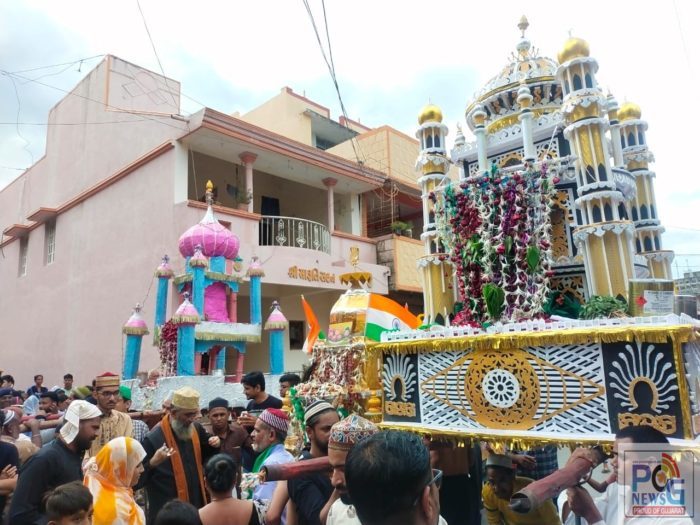 જેમાં માર્કેટ ફળિયા બાવાગોર નો ટેકરો નવીનગરી તેમજ ગાંધી ફળિયા ખાતે તાજીયા બનાવવામાં આવે છે. ગાંધી ફળિયા ખાતે હિન્દુ-મુસ્લિમ બન્ને કોમના બિરાદરો દ્વારા તાજા છેલ્લા ઘણા વર્ષોથી તાજીયા બનાવવામાં આવે છે જે ખરેખર હિંદુ-મુસ્લિમ સમાજ માટે કોમી એકતાનું ઉદાહરણ પૂરું પાડે છે, આ તાજીયા મુખ્ય બજારમાંથી ફેરવી તાપી કિનારેથી માર્કેટ ફળિયા ખાતે ઠંડા કરવામાં આવ્યા હતા. આ યોજાયેલ જુલૂસમાં હિન્દુ-મુસ્લિમ બન્ને કોમોના બિરાદરો જોડાયા હતા. જેમાં મુસ્લિમ કોમના આગેવાનો સમીર બાવા, નિયાઝ બાબા, આસિફ બાવા, મુસ્તાકભાઈ સાકીર કુરેશી, સાદપભાઇ સમાજના ભાઈઓ જોડાયા હતા. માંડવી પોલીસ સ્ટેશનના પી.આઇ હેમંતભાઈ પટેલે ચુસ્ત પોલીસ બંદોબસ્ત ગોઠવ્યો હતો.