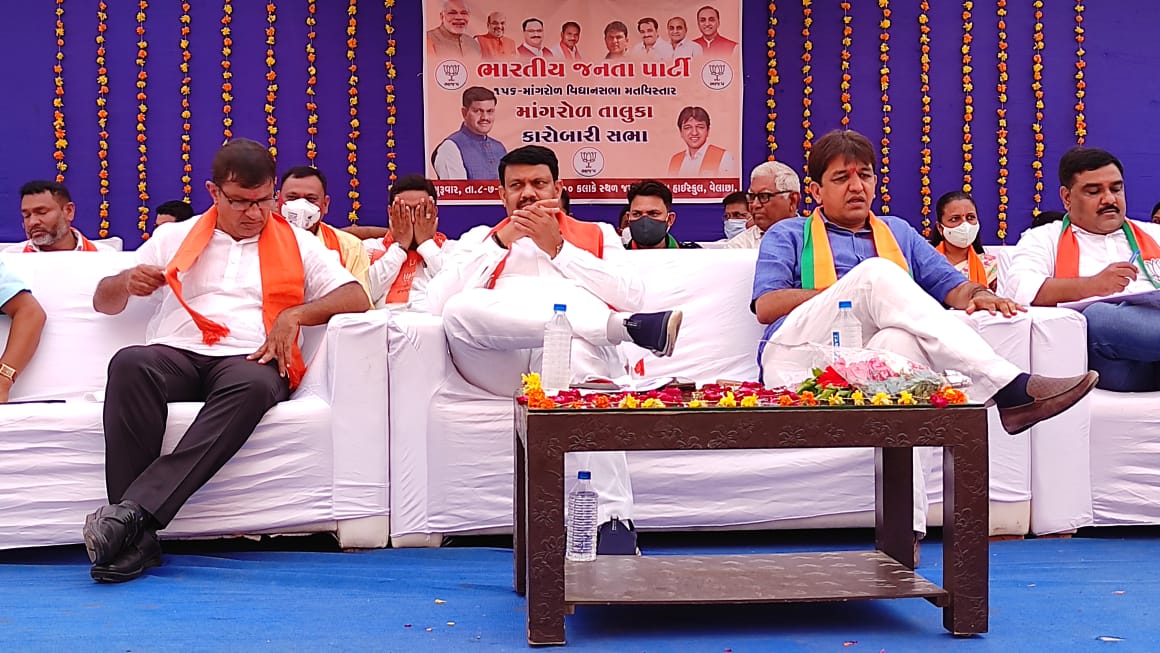 માંગરોળ તાલુકાનાં વેલાછા ગામે શંકરદાદા હાઇસ્કુલ ખાતે મંત્રી ગણપતસિંહ વસાવાનાં અધ્યક્ષતામાં કારોબારી બેઠક યોજાઈ હતી. વૃક્ષારોપણ અને પ્રાર્થના કર્યા બાદ બેઠકની શરૂઆત કરાઈ હતી. સુરત જિલ્લામાં ભાજપમાં નવા નીમાયેલા તમામ હોદ્દેદારોને પુષ્પગુચ્છ આપી સ્વાગત કરી શુભેચ્છાઓ પાઠવવામાં આવી હતી.