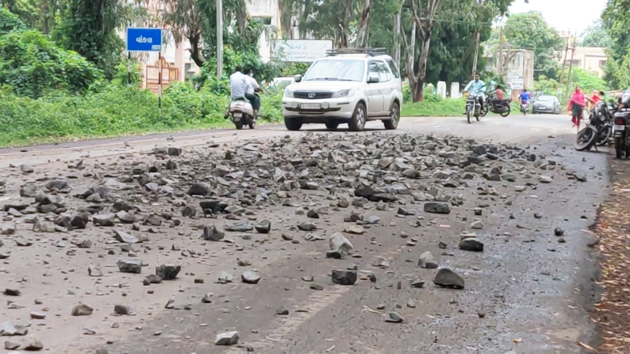 વાંકલનાં મુખ્ય માર્ગ પર ટ્રક અને ડમ્પરોમાંથી પથ્થર-મેટલ માર્ગ પર પડતાં વાહનચાલકોને હાલાકી.