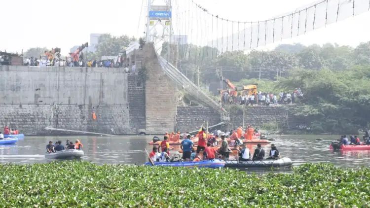 30 ઓક્ટોબર, 2022 ના રોજ મોરબી જિલ્લામાં મચ્છુ નદી પરનો ઝૂલતો પુલ તૂટી ગયો હતો. જેના કારણે 135 લોકોના મોત થયા છે. આ બ્રિજ અંગ્રેજોના સમયમાં બનાવવામાં આવ્યો હતો અને પાલિકાના કરાર હેઠળ ઓરેવા ગ્રુપ આ બ્રિજનું સંચાલન અને જાળવણી કરતું હતું. 30 ઓક્ટોબર, 2022ના રોજ મોરબી જિલ્લામાં મચ્છુ નદી પરનો ઝૂલતો પુલ તૂટી ગયો હતો. જેના કારણે 135 લોકોના મોત થયા છે. આ બ્રિજ અંગ્રેજોના સમયમાં બનાવવામાં આવ્યો હતો અને પાલિકાના કરાર હેઠળ ઓરેવા ગ્રુપ આ બ્રિજનું સંચાલન અને જાળવણી કરતું હતું. પોલીસે આ કેસમાં ઓરેવા ગ્રુપના 4 કર્મચારીઓની ધરપકડ કરી લીધી છે. જેમાં બે મેનેજર અને બે ટિકિટ ક્લાર્કનો સમાવેશ થાય છે.
