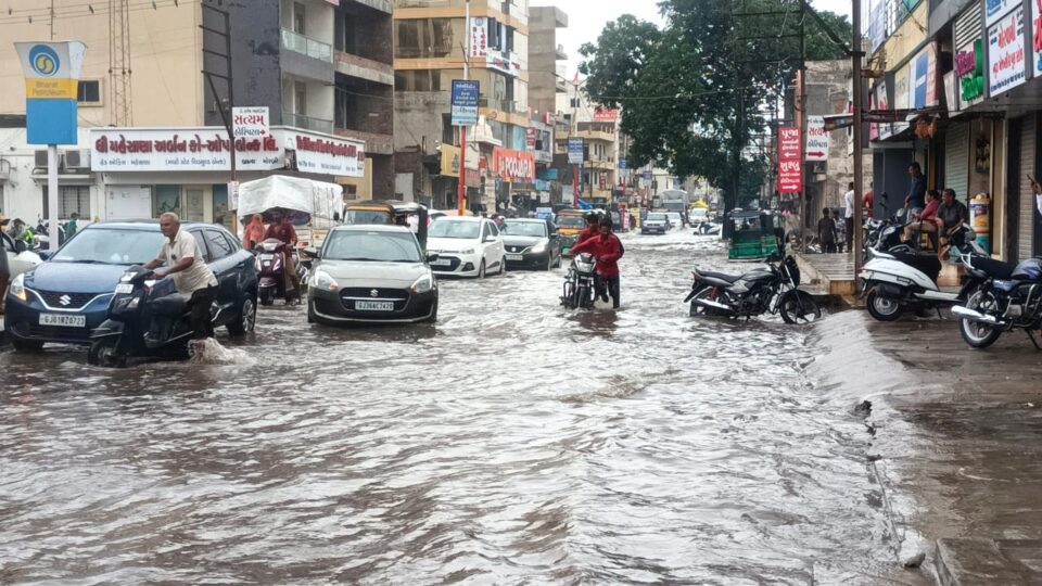 મોરબીમાં ૨ કલાકમાં સવા ત્રણ ઇંચ વરસાદથી સમગ્ર શહેર જળબંબાકાર