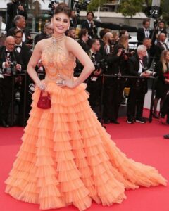 કાન્સ ફિલ્મ ફેસ્ટિવલ 2023 : ઉર્વશી રૌતેલા કાન્સ ફિલ્મ ફેસ્ટિવલ ડે 2 માં સિક્વિન્ડ ફ્રિલ ઓરેન્જ ગાઉનમાં ચમકી