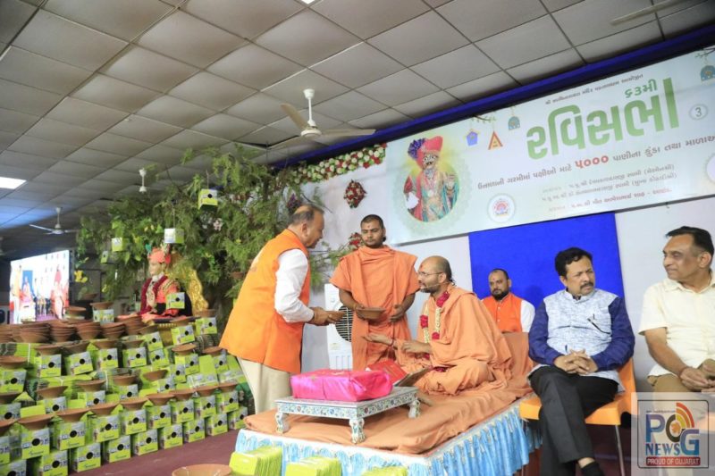 નડિયાદ : વડતાલમાં ૬૩ મી રવિસભામાં પક્ષીઓ માટે પ૦૦૦ પાણીના કુંડા અને માળાનું વિતરણ.