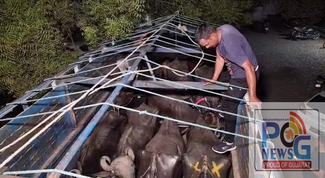 પોલીસ અધિક્ષક ખેડા નડીયાદ નાઓની કચેરીએ અરજી મળેલ કે ખેડા જીલ્લામાં નડીયાદમાં પશુઓની હેરાફેરી થઇ રહેલ છે. જે અરજી આધારે પોલીસ અધિક્ષક ખેડા નડીયાદ નાઓની સુચનાથી એલ.સી.બી. પોલીસ ઇન્સ્પેક્ટર એ.વી.પરમારનાઓ સાથે એલ.સી.બી.સ્ટાફના પોલીસ માણસો અરજીમાં જણાવેલ હકીકત અન્વયે ડાકોર રોડ સલુણ એક્ષપ્રેસ હાઇવે ઉપર પેટ્રોલીંગમાં હતા દરમ્યાન હેડકો.કનકસિંહ નાઓને મળેલ બાતમી હકીકત આધારે ડાકોર રોડ સલુણ એક્ષપ્રેસ હાઇવે ઉપરથી અશોક લેલન ટ્રક નં.GJ-02-ZZ-7872 માં ગેરકાયદેસર રીતે ભેંસો તથા પાડાઓ ભરેલ ટ્રકને પીછો કરી અમદાવાદ-વડોદરા એક્ષપ્રેસ હાઇવે, સુંઢા ગામની સીમમાં રોકી ઝડપી પાડેલ જેમાં તપાસ કરતા ટ્રક ડ્રાઇવરનું નામ (૧) ઇશાક કેયુમ દઉવા રહે.રવીયાણા મુમનવાસ તા.જી.પાટણ તથા ડ્રાઇવર પાસે બેઠેલ ઇસમ (૨) મોહંમદભાઇ આમીનભાઇ મલપરા રહે. વદાણી જાખા, સરકારી ડેરીની બાજુમાં તા.જી.પાટણ નાઓને ટ્રકમાં ૧૩ ભેંસો તથા એક પાડો ક્રતા પુર્વ ગળે ટુંપાય તે, રીતે ટુંકા દોરથી બાંધી લઇ જતા હોય તેમજ ટ્રકમાં ઘાસ ચાલકે પાણીની કોઇ વ્યવસ્થા કરેલ ન હોય અને આ ભેંસ તથા પાડા (૩) યાકુબભાઇ સુલેમાનભાઇ ગરબડ રહે. બારકોશીયા રોડ નડીયાદ નાઓએ ભરી આપેલ હોય જેથી તેઓને પણ ઝડપી પાડી આ શખ્સો પાસે ભેંસો તથા પાડાની હેરાફેરી અંગેનું પાસ પરમીટ તથા ટ્રકના આર.ટી.ઓને લગતા કાગળો ન હોય જેથી ત્રણેય ઇસમોની અંગજડતીમાંથી મળેલ મોબાઇલ ફોન નંગ-૩ કિ.રૂ.૧૨,૫૦૦/- તથા ૧૩ ભેંસો તથા એક પાડો કિ.રૂ. ૨,૧૦,૦૦૦/- તથા ટ્રક કિ.રૂ.૧૦,૦૦,૦૦૦/ મળી કુલ રૂ.૧૨,૨૨,૫૦૦/-નો મુદ્દામાલ કબ્જે કરી પકડાયેલ તમામ ઇસમો તેમજ પશુઓ આપનાર વિરુદ્ધ ધી પશુ સંરક્ષક અધિનિયમ મુજબ ગુનો નોંધી આગળ વધુ તપાસ નડિયાદ એલસીબી હાથ ધરેલ છે.