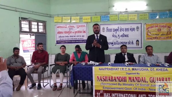 જિલ્લા કાનૂની સેવા સત્તા મંડળ, જિલ્લા ન્યાયાલય નડીઆદનાં ચેરમેન અને મુખ્ય જિલ્લા ન્યાયાધીશ એ આઈ. રાવલ સાહેબની સુચના અને માર્ગદર્શન અનુસાર જિલ્લા કાનૂની સેવા સત્તા મંડળ, જિલ્લા ન્યાયાલય નડીઆદ, નશાબંધી અને આબકારી ખાતું ખેડા જિલ્લો તથા નવપ્રભાત વ્યસનમુક્તિ અને પુન:સ્થાપન કેન્દ્રનાં સંયુક્ત ઉપક્રમે આજ રોજ તારીખ ૩૧/૦૫/૨૦૨૨ નાં રોજ “ANTI TOBOCCO DAY” નિમિતે ગુજરાત રાજ્ય વાહન વ્યવહાર નિગમનાં નડીઆદ વિભાગનાં વિભાગીય યંત્રાલય (વર્કશોપ) ખાતે એક કાનૂની શિક્ષણ શિબિર તથા વ્યસન મુક્તિ પ્રદર્શન કાર્યક્રમ” નું આયોજન કરવામાં આવેલ.
