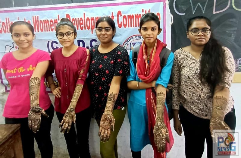 નડિયાદ એજયુકેશન સોસાયટી, સંચાલિત જે.એન્ડ.જે. કોલેજ ઓફ સાયન્સ, નડિયાદ કોલેજીયેટ વુમન ડેવલપમેન્ટ કમિટિ (C,W.D,C,) દ્વારા મહેદી સ્પર્ધાઓનું આયોજન કરવામાં આવ્યું જેમાં ૫૦ થી વધુ વિદ્યાર્થીની બહેનોએ ભાગ લીધો હતો, જેમાં બહેનો એ વિવિધ લેટેસ્ટ ડિઝાઈનર મહેંદી, બ્રાઈડલ મહેંદી, અરેબીક જેવી અવનવી પેટર્ન ધરાવતી ક્રિએટીવ મહેંદી મૂકેલ અને તેવી મહેંદીનું મૂલ્યાંકન માટે નિર્ણાયક તરીકે હિતેશભાઈ શિક્ષક પ્રા. શાળા, વાલ્લા જેઓની ખાસ ઉપસ્થિતિમાં થયું.