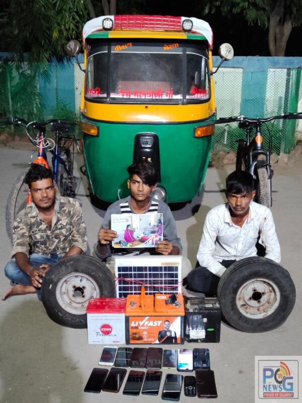 એચ.વી.સીસારા નાઓના માર્ગદર્શન હેઠળ સર્વેલન્સ સ્કોડના માણસો પેટ્રોલીંગમાં હતા દરમ્યાન બાતમી મળેલ કે ત્રણ ઇસમો એક સી.એન.જી રીક્ષામા ચોરીના મોબાઇલો વેચવા માટે મહેમદાવાદ ભમ્મરીયા કુવા તરફથી ખાત્રજ ચોકડી તરફ જનાર છે. જેઓને સાઈબાબા મંદિર પાસે રોકી તેઓના નામ ઠામ પુછતા (૧) રાજુભાઇ ઉર્ફે વિનોદ પુનમભાઇ મારવાડી રહે.મહેમદાવાદ (૨) વિમલેશભાઇ ઉર્ફે ગોલુ પ્રેમકુમાર ઠાકોર રહે.મહેમદાવાદ (૩) કમલેશભાઇ ઉર્ફે ટીંકુ પ્રેમકુમાર ઠાકોર રહે.મહેમદાવાદ નાઓ પાસેથી અલગ-અલગ કંપનીના મોબાઇલ ફોન નંગ-૧૪ કિ.રૂા.૫૧,૫૦૦ તથા એક સી.એન.જી રિક્ષા કિ.રૂા.૪૫,૦૦૦ તથા અલગ-અલગ કંપનીની નાની-મોટી બેટરી નંગ-૩ કિ.રૂા.૧૦,૦૦૦ તથા સોલાર પેનલ કિ.રૂ.૨૫૦૦ તથા રીક્ષાના સ્પેરવ્હીલ નંગ-૨ કિ.રૂા.૧૦૦૦ તથા બે રેન્જર સાઇકલો કિ.રૂા.૫૦૦૦ મળી કુલ રૂ. ૧,૧૫,૦૦૦ નો મુદ્દામાલ સી.આર.પી.સી. ૧૦૨ મુજબ તપાસ અર્થે કબ્જે કરી ત્રણેયની ધરપકડ કરી વધુ તપાસ હાથ ધરી છે.
