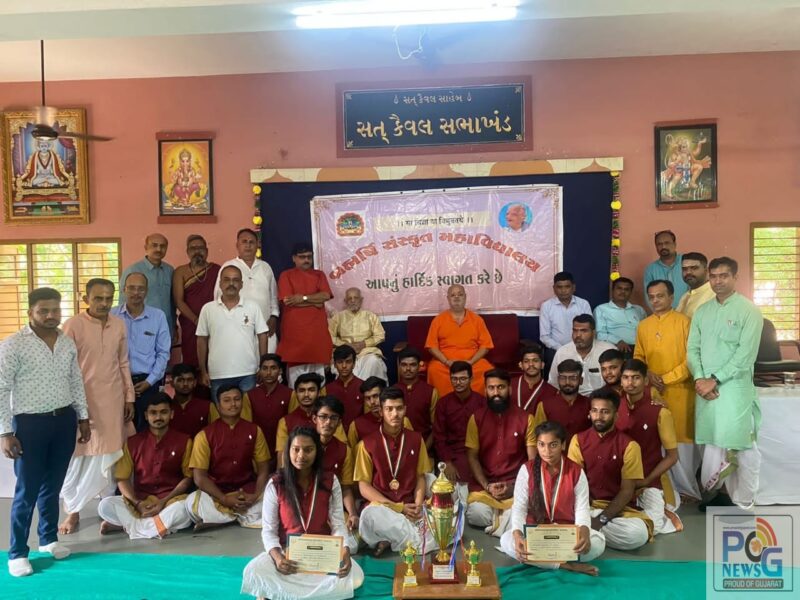 શ્રી સોમનાથ સંસ્કૃત યુનિવર્સિટી, વેરાવળ દ્વારા તા. 22 થી 24 દરમ્યાન યોજાયેલ 16 માં યુવક મહોત્સવમાં બ્રહ્મર્ષિ સંસ્કૃત મહાવિદ્યાલય – નડિયાદના વિદ્યાર્થીઓ તથા વિદ્યાર્થીનીઓ દ્વારા 3 સુવર્ણ પદક, 12 રજતપદક અને 6 કાંસ્યપદક એમ કુલ 21 મેડલ પ્રાપ્ત કરી ગુજરાતમાં દ્વિતીય સ્થાન પ્રાપ્ત કર્યું હતું તથા 7 વિદ્યાર્થીઓ રાષ્ટ્રિય સ્તર પર રમવા માટે પસંદ થયા તે નિમિત્ત પદ્મશ્રી ડૉ. ડાહ્યાભાઇ શાસ્ત્રીજી, સંતરામ મંદિર ઉમરેઠના સંતશ્રી ગણેશદાસજી મહારાજ, રણજીતસિંહ ડાભી (E.I)ખેડા જિલ્લો, ઉમેશભાઈ માછી (D.P.O) ખેડા જીલ્લો, બ્રહ્મર્ષિ સંસ્કૃત મહાવિદ્યાલયના આચાર્ય ડૉ. અમૃતલાલ ભોગાયતા, અધ્યાપકો, કાર્યકર્તાઓ તથા છાત્રો ઉપસ્થિત રહ્યા હતા.