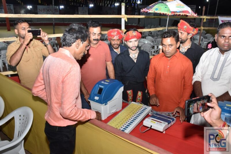 આગામી સમયમાં વિધાનસભા સામાન્ય ચૂંટણી-૨૦૨૨ યોજાનાર છે. ભારતના ચૂંટણીપંચ અને મુખ્ય નિર્વાચન અધિકારી-ગાંધીનગર દ્વારા નવલી નવરાત્રીના મહોત્સવમાં મતદાન બાબતે લોક જાગૃતિ કેળવાય તે માટે જુદી-જુદી પ્રવૃત્તિઓનું આયોજન કરવા અંગે સૂચન કરવામાં આવ્યું છે. આ અન્વયે ખેડા જિલ્લામાં ૧૧૬-નડિયાદ વિધાનસભા મત વિસ્તારમાં નડિયાદ-પીપલગ રોડ પર આવેલ યોગીફાર્મ ખાતે ગરબા કાર્યક્રમમાં જિલ્લા ચૂંટણી અધિકારી અને કલેક્ટર કે.એલ. બચાણીએ હાજરી આપી હતી. કલેક્ટરએ કાર્યક્રમના સ્થળે ઈવીએમ – વીપેટ નિદર્શન કામગીરીનું નિરીક્ષણ કર્યુ. સાથે સાથે ખેલૈયાઓને આગામી ચૂંટણીમાં વધુમાં વધુ મતદાન કરવા સંકલ્પ પત્રનું વાંચન કરાવી અનુરોધ કર્યો.