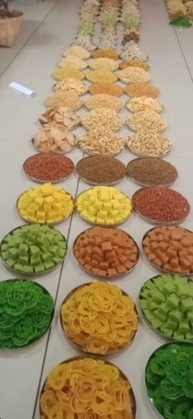 ભગવાન શ્રીહરિ સહિત મંદિરમાં બિરાજતા દેવોને ૧૫ હજાર કિલો વજનનો અન્નકૂટ (મહાપ્રસાદ) ધરાવવામાં આવશે. જેમાં ૮૦૦૫ કિલો મીઠાઈ વાનગીઓ, ૨૭૧૦ કિલો ફરસાણ, ૫૦૦ કિલો બેકરી આઈટમ, ૨૦૦૦ કિલો વિવિધ શાકભાજી સહિત ભીની વાનગીઓ, ૧૦૦૦ કિલો ફળફળાદિ અને વિવિધ મુખવાસ ધરાવવામાં આવશે. અન્નકૂટના આરંભથી ૧ હજાર જેટલા ભાઈ-બહેનો નવ-નવ કલાક સુધી મંદિરના ભોજનાલયમાં ખડેપગે સેવા આપી રહ્યાં છે. આમાં ૬૨ ગામોના સ્વયંસેવકો તથા રવિસભાના સભ્યો છે. આ ગામોમાં ચરોતર કાનમ-સુરત-મુંબઈનો સમાવેશ થાય છે. જ્યારે ભંડાર વિભાગના ઉમેદભાઈ પરમાર, વિશાલ પટેલ સહિતના ૧૦ કર્મચારીઓ સેવા આપી રહ્યાં છે. આ ઉપરાંત કલ્પેશભાઈ ગઢીયા તથા જયદીપભાઈ પટેલ (અંકલેશ્વર) સેવા આપી રહ્યાં છે. વડતાલ તાબાના મંદિરો અને ૧ હજા૨ ઉપરાંત ગામોમાં વડતાલના ૪૦ સંતો અને ૧૦૦ હરિભક્ત સેવકો ૨૫ વાહનો ધ્વારા અન્નકૂટ પ્રસાદનું વિતરણ કરશે. પ્રસાદની સાથે-સાથે વડતાલ મંદિરના આકર્ષક અને સ્મૃતિરૂપ કેલેન્ડરો, નિર્ણય પણ હરિભક્તોમાં વિતરણ કરાશે. વડતાલ મંદિરના ચેરમેન દેવપ્રકાશ સ્વામી પણ અન્નકૂટ કામગીરીનું નિરીક્ષણ કરી રહ્યાં છે.