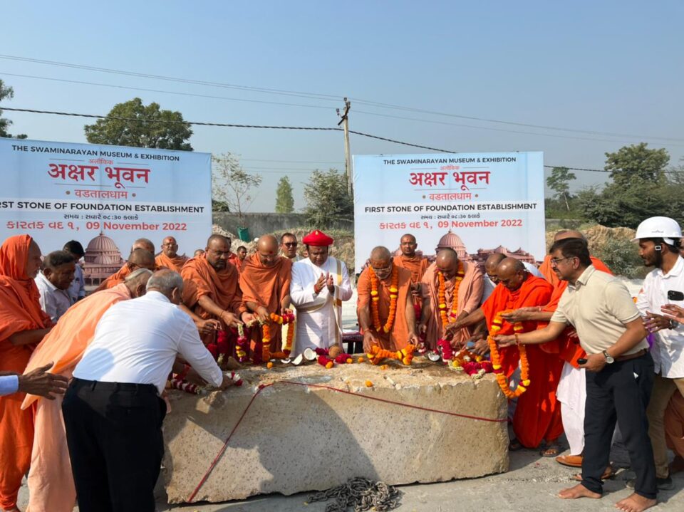 આજરોજ રૂપિયા બસો કરોડના ખર્ચ નિર્માણ થનાર અલૌકીક અક્ષરભુવનના પાયાની પ્રથમશીલા પ્રસ્થાપિત કરવામાં આવી. ચુનો, રેતી, કપચી અને ક્વોરી ડસ્ટના મિશ્રણ સાથે પાયામાં ત્રણ ફુટનું એક મજબૂત લેયર તૈયાર કરવામાં આવ્યું છે, ત્યારબાદ કાર્તકી સમૈયાની સમાપ્તિ અને ચંદ્ર ગ્રહણની પૂર્ણાહુતિ પ્રસંગે આ જાહેરાત કરવામાં આવી અને તા ૯-૧૧-૨૨ ના રોજ પાયાની પ્રથમશીલા પ્રસ્થાપિત કરવામાં આવી. આચાર્ય શ્રીરાકેશપ્રસાદજી મહારાજ, જ્ઞાનજીવન સ્વામી કુંડળધામ, ચેરમેન દેવપ્રકાશ સ્વામી, મુખ્ય કોઠારી ડો સંત સ્વામી, નૌતમ સ્વામી – બાપુ સ્વામી, ગોવિંદ સ્વામી – મેતપુરવાળા, બાલમુકુંદ સ્વામી – સરધાર વગેરે સંતો, મહેન્દ્રભાઈ વગેરે ટ્રસ્ટીઓ અને દાતાઓના હસ્તે શિલાપૂજન કરવામાં આવેલું.