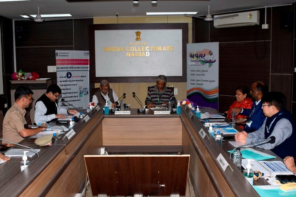 સ્પેશિયલ ઓબઝર્વર અજય નાયર અને દિપક મિશ્રાએ ખેડા જિલ્લામાં છ વિધાનસભા વિસ્તારમાં ચાલી રહેલી ચૂંટણીની તૈયારીઓની વિગતવાર જાણકારી જિલ્લા ચૂંટણી અધિકારી કે. એલ. બચાણી તથા નિરીક્ષકઓ પાસેથી પ્રાપ્ત કરી હતી.