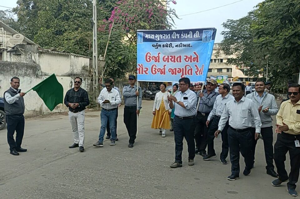 મધ્ય ગુજરાત વીજ કંપની લિમિટેડ, કોર્પોરેટ ઓફિસ, વડોદરાના આદેશ અનુસાર વર્તુળ કચેરી, નડિયાદ દ્વારા ગુરુવારે “એનર્જી કન્ઝર્વેશન ડે”રેલી નું આયોજન કરવામાં આવ્યું હતું. જેમાં નડિયાદ વર્તુળ કચેરી અંતર્ગત આવેલ વિભાગીય કચેરીઓ તથા પેટા વિભાગીય કચેરીઓના ૨૦૦ જેટલા અધિકારીઓ અને કર્મચારીઓ ઉપસ્થિત રહેલ.