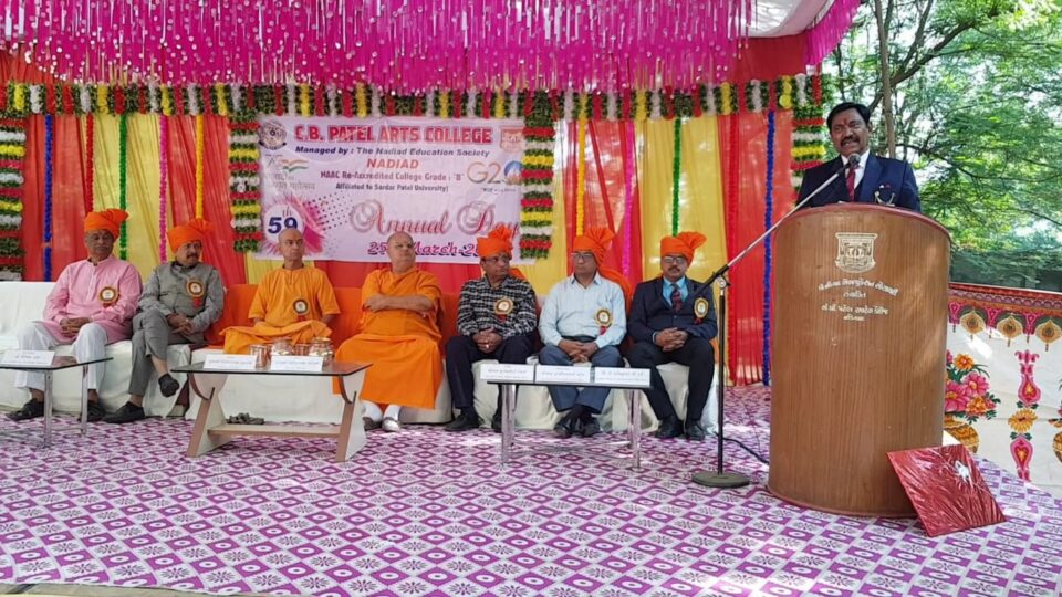 ધી નડિયાદ એજ્યુકેશન સોસાયટી સંચાલિત સી.બી. પટેલ આર્ટસ કોલેજ, નડિયાદમાં વાર્ષિકોત્સવ નું આયોજન શનિવારે ના રોજ થયું હતું. સી.બી પટેલ આર્ટસ કોલેજ,નડિયાદના પ્રાંગણમાં યોજાનાર આ વાર્ષિકોત્સવમાં નડિયાદ સંતરામ મંદિરના પરમપૂજ્ય સંત શ્રી નિર્ગુણદાસજી મહારાજ તેમજ ઉમરેઠ સંતરામ મંદિરના પરમ પૂજ્ય સંત શ્રીગણેશદાસજી મહારાજ આશીર્વાદ આપવા પધારી કોલેજ પરિવારને કૃત કૃત્ય ર્ક્યા. ઉપરાંત સરદાર પટેલ યુનિવર્સિટીના કા. વાઇસ ચેન્સલર પ્રો.નિરંજનભાઇ પટેલ મુખ્ય અતિથિ રુપે પધારી વિદ્યાર્થીઓને વિશિષ્ટ ઉદ્બોધન કરી કાર્યક્રમની શોભા વધારી હતી. તથા ધી નડિયાદ એજ્યુકેશન સોસાયટીના મંત્રી ભૂપેન્દ્રભાઇ દેસાઈના અધ્યક્ષિય પ્રવચન વિદ્યાર્થીઓ તથા સમગ્ર કોલેજ પરિવારને પ્રેરકબળ પૂરું પાડનાર બની રહ્યું સહમંત્રી ચન્દ્રકાન્તભાઇ પટેલ તથા તથા ખજાનચી પુરુષોત્તમ ભાઇ પટેલ તેમજ અન્ય શ્રેષ્ઠિઓ તથા ભગિની સંસ્થાના આચાર્યઓ-અધ્યાપકઓ તથા નિમંત્રિત મહાનુભાવોની બહોળી ઉપસ્થિતિમાં તેમજ તમામ વિદ્યાર્થીઓની હાજરીમાં આ દબદબાભેર વાર્ષિકોત્સવ આયોજિત થયો હતો. કોલેજના આચાર્ય પ્રો. ડો. મહેન્દ્રકુમાર દવે સર દ્વારા વિદાય લેતા વિદ્યાર્થીઓને આપેલ દિક્ષાંત પ્રવચનમાં શિક્ષાની જગ્યાએ દિક્ષા મેળવી સમાજ ઉપકારક બનવાની હાકલ કરી હતી.