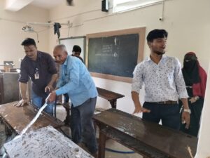 ધી નડિયાદ એજ્યુંકેસન સોસાયટી સંચાલિત નડિયાદની નામાંકિત સી બી પટેલ આર્ટસ કોલેજમાં કોલેજના યુવા આચાર્ય ડો. મહેન્દ્રકુમાર દવેના માર્ગદર્શન હેઠળ સ્વસ્છતા અભિયાન અંતર્ગત સફાઈકામ યોજવામાં આવ્યું જેમાં કોલેજના વિવિધ વિષયના અધ્યક્ષ અને સાથી અધ્યાપક મિત્રો અને સેવકભાઈઓને જોડવામાં આવ્યા હતા તેમના નેજા હેઠળ કોલેજના ૨૦૦ જેટલા વિદ્યાર્થીઓ જોડાયા અને કોલેજમાં આવેલ કોલેજ બિલ્ડીંગના વિવિધ ક્લાસરૂમ અને તેમાં આવેલી બેન્ચીસ,પંખા અને બ્લેકબોર્ડ અને લોબીને સાફ કરીને ત્યારબાદ તેને વોટરીંગ અને પોતા કરીને સફાઈ કરવામાં આવી જેની નોંધ કોલજના આચાર્ય દ્વારા લેવામાં આવી અને તેમના કાર્યની પ્રસંશા કરી સર્વેના ઉત્સાહમાં વધારો કરવામાં આવ્યો.