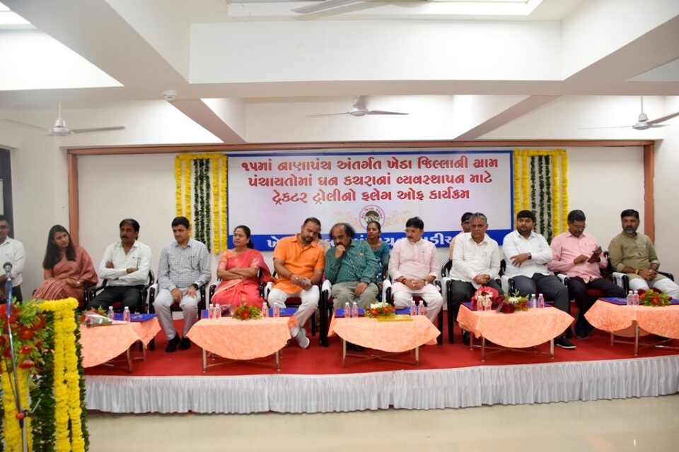 ખેડા જિલ્લામાં નડિયાદ જિલ્લા પંચાયત કચેરી ખાતે કેન્દ્રીય રાજ્ય સંચારમંત્રી દેવુસિંહ ચૌહાણની અધ્યક્ષતામાં ૧૫મા નાણાપંચ હેઠળ કુલ રૂ. ૧ કરોડ ૨૦ લાખના ખર્ચે ખરીદેલ મીની ટ્રેક્ટર ટ્રોલીને ફ્લેગ ઓફ કરવામાં આવ્યું હતું. ગ્રામ્ય કક્ષાએ સ્વચ્છતામાં વધારો કરવાના હેતુથી ખેડા જિલ્લા પંચાયત દ્વારા ૧૫ મા નાણાપંચ અંતર્ગત જિલ્લા કક્ષાની ૧૦ ટકા ગ્રાન્ટમાંથી આયોજન સમિતિ દ્વારા ગ્રામ્ય કક્ષાએ ઘન કચરાના નિકાલ માટે મીની ટ્રેક્ટર ટ્રોલીના કામોનો સમાવેશ કરવામાં આવ્યો હતો. જેની કામગીરી પૂર્ણ થતા તા. ૦૫ જુલાઈ ૨૦૨૩ના રોજ આ ટ્રેકટર ટ્રોલીનો લાભ જિલ્લાના કુલ આઠ તાલુકાના ૨૪ ગામોને ૨૪ ટ્રેકટરો ગામની સ્વચ્છતાના હેતુથી મંત્રી દ્વારા લીલી ઝંડી આપવામાં આવી હતી.
