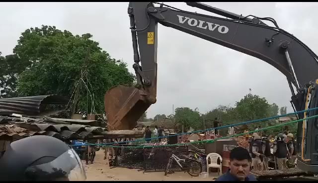 નડિયાદ : કમળા ગામે પોલીસ બંદોબસ્ત વચ્ચે કાચા મકાનો તોડી પાડવાની પ્રક્રિયા હાથ ધરાઈ