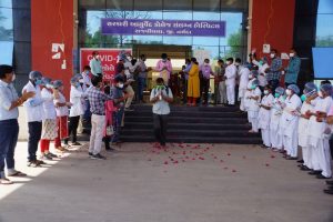 દરમિયાન નર્મદા કલેકટર મનોજ કોઠારી, આરોગ્ય અધિકારી કે.પી.પટેલ, ડો.કશ્યપ, ડો.મેંણાત સહિત સમગ્ર આરોગ્ય વિભાગની ટીમે ફૂલોનો વરસાદ કરી દર્દીઓને અભિનંદન પાઠવ્યા હતા. નર્મદાના પ્રથમ કોરોના દર્દી કિરણ બાબરે જણાવ્યું હતું કે તમને કોરોના પોઝિટિવ હોવાનું નિદાન થાય તો ગભરાશો નહિ.વૉર્ડમાં દાખલ થતાં પેહલા મેન્ટલી તૈયાર થઈ જવું પડે, સારવારની સાથે તમારું મનોબળ જો મજબૂત હશે તો તમે કોરોનાને હરાવી શકશો એમા કોઈ મનમેખ નથી.નર્મદા જિલ્લા મનોજ કોઠારીએ કોરોનાને હરાવી વિદાઈ લઈ રહેલા દર્દીઓને શુભકામનાઓ આપી હતી.એમણે જણાવ્યું હતું કે નર્મદા જિલ્લામાં 70 હજાર સિનિયર સિટીઝનોમાંથી 40 હજાર જેટલા સિનિયર સિટીઝનોનું આરોગ્ય ટીમ દ્વારા સ્ક્રીનિંગ કરાયું છે.
