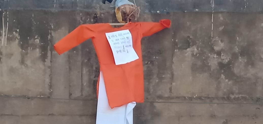 સરદાર સરોવર બંધના 6 અને 19 ગામના અસરગ્રસ્તોના વિવિધ પ્રશ્નો મુદે નારાજ કોઈક અજાણી વ્યક્તિએ મોદીનું ફાંસો ખાતું પૂતળું લટકાવતા ખળભળાટ.