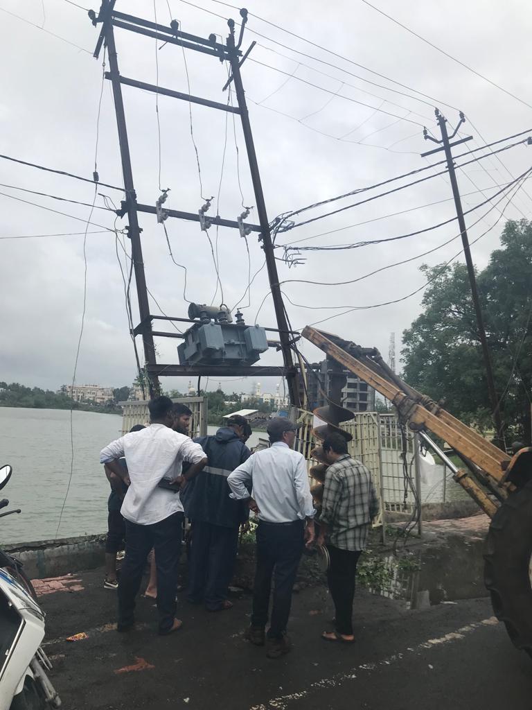 જી.ઈ.બી. ટ્રાન્સફોર્મર નમી પડવાના કારણે ગામના જાગૃત નાગરિક દ્વારા વીજ કંપનીને જાણ કરતા વીજ કંપનીના કર્મચારી સ્થળ પર પહોંચ્યા હતા, જે બાદ વીજ પુરવઠો બંધ કરી ક્રેનની મદદથી ટ્રાન્સફોર્મર સીધું કરી વીજ પુરવઠો રાબેતા મુજબ શરૂ કરવામાં આવ્યો હતો.