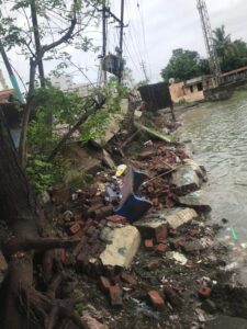 નવસારીમાં ભારે વરસાદના કારણે તળાવની પ્રોટેક્શન વોલ ધરાશયી થઈ હતી, તેમજ પાણીના વહેણના કારણે વિજ ટ્રાન્સફોર્મર નમી પડ્યું હતું, જેને લઈ લોકોમાં ફાફડાટનો માહોલ છવાયો હતો, વહેલી સવારે પડેલ ભારે વરસાદના પાણીના નિકાલના વહેણના કારણે તળાવની પ્રોટેક્શન વોલ ધરાશયી થઈ તેમજ જી.ઇ.બી. નુ વિદ્યુત ટ્રાન્સફોર્મર નમી પડ્યું હોવાનું કહેવાય રહ્યું છે.