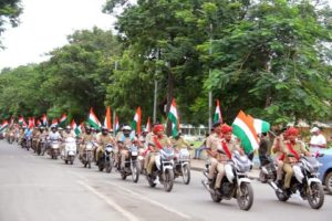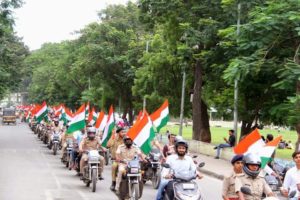 દેશ પ્રત્યે રાષ્ટ્રભાવના કેળવાઇ અને લોકોમાં જાગૃતતા કેળવાઇ તે હેતુસર નવસારી ખાતે સ્વાતંત્ર્યપર્વની પૂર્વ સંધ્યાને તિરંગાયાત્રા યોજાઇ હતી. નવસારી કલેકટર ર્ડા.એમ.ડી.મોડિયાએ સંસ્કાર ભારતી સ્કુલ ખાતે તિરંગાયાત્રાનો લીલીઝંડી દ્વારા પ્રસ્થાન કરાવ્યું હતું. તિરંગાયાત્રામાં પોલીસ બેન્ડની સુરાવલી સાથે પોલીસ જવાનો સહિત અન્યોની ૭૨ બાઇક સાથેની રેલી અને ખુલ્લી જીપમાં રાષ્ટ્રઘ્વજ સાથેની યાત્રા આશાપુરા માતાજી મંદિર, દૂધિયા તળાવ, સરકીટ હાઉસ, લુન્સીકૂઇ જુનાથાણા, કાલિયાવાડી થઇ ચોવીસી આર.ડી.પટેલ હાઈસ્કુલ ખાતે પહોંચી હતી. જયાં યુવાનોને દેશનની અખંડતાના શપથ લીધા હતી. માર્ગમાં આ રેલીનું દેશભકિતગીત અને ફૂલો સાથે ભવ્ય સ્વાગત કરવામાં આવ્યું હતું.