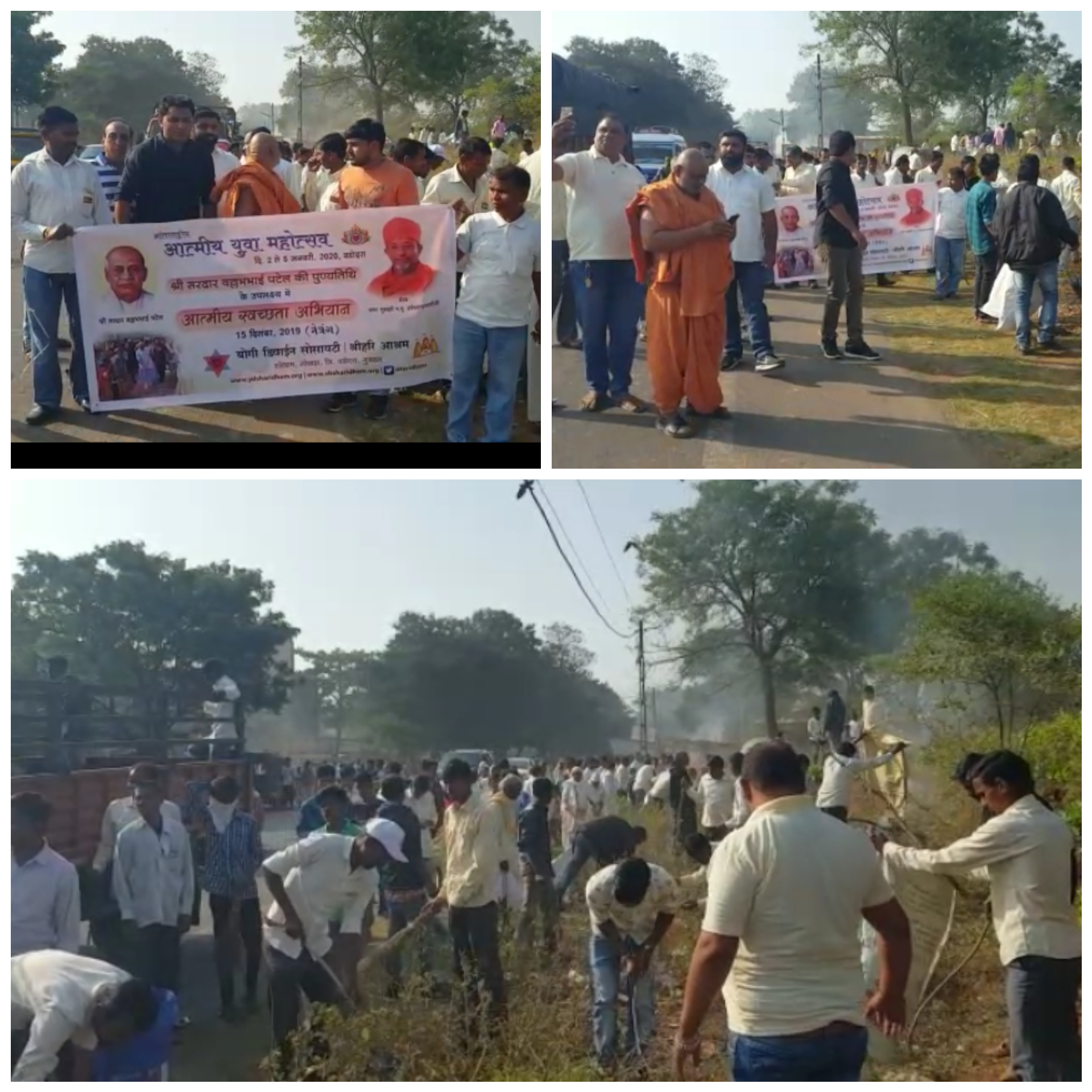 પ્રાપ્ત માહિતી ભરૂચ-નમૅદા જીલ્લામાં વસવાટ હરિભક્તો અને આત્મીય સમાજના આસ્થાના કેન્દ્ર સમાન સ્વામીનારાયણ મંદિર અને યોગી ડિવાઇન સોસાયટી સોખડા ધ્વારા સરદાર પટેલની પુણ્યતિથિ સહિત આત્મીય યુવા મહોત્સવ અંતગૅત સ્વચ્છતા અભિયાનનો કાર્યક્રમ યોજાયો હતો. જેમાં વહેલી સવારેથી સ્વામીનારાયણ મંદિરથી એસકે પટેલ પાકૅ,નેત્રંગ ચારરસ્તા,સામુહિક આરોગ્ય કેન્દ્ર,તાલુકા સેવાસદન,તા.પંચાયત અને પોલીસ સ્ટેશનના કંપાઉન્ડમાં સહિત સંગ્રહ ગામમાં ઠેર-ઠેર સાફસફાઇ કરવામાં આવી હતી. દુષિત કચરાને સળગાવીને ટ્રેક્ટરમાં ભરીને ગામની બહાર નાખવામાં આવ્યો હતો. અને ગામના રહીશોને જાહેર સ્થળો ઉપર ગંદકી ફેલાવવા અને કચરો નહીં નાખવાની અપીલ કરી હતી,જે દરમિયાન સ્વામીનારાયણ મંદિરના ભક્તિવલ્લભ સ્વામીએ જણાવ્યું હતું કે,સમાજ જીવનમાં લોકો વચ્ચે પરસ્પર આત્મીયનો સબંધ જળવાઇ અને સરદાર પટેલની પુણ્યતિથિ સહિત દિવ્યભવ્ય આત્મીય મહોત્સવના ઉજવણીના ભાગરૂપે સ્વચ્છતા અભિયાનનો કાર્યક્રમ કરાયો છે. જેમાં હજારોની સંખ્યામાં સંયભુ હરિભક્તો અનેે ગ્રામજનો જોડાયા છે. જે આનંદની બાબત છે,જ્યારે નેત્રંગ ગામના ઇતિહાસમાં ખુબ જ મોટાપાયે સ્વચ્છતાનો કાયૅક્રમ યોજાતા સમગ્ર વિસ્તારની પ્રજામાં પ્રેરણાદાયી આકષૅણનું કેન્દ્ર બન્યું હતું. જેમાં પુજ્ય ભક્તિવલ્લભ સ્વામી,યુવા કોંગ્રેસના પ્રમુખ શેરખાન પઠાણ,મોહસીન પઠાણ,જયેશ વસાવા,સ્નેહલ પટેલ,મહેન્દ્ર મકવાણા સહિત હજારોને સંખ્યામાં હરિભક્તો જોડાયા હતા.