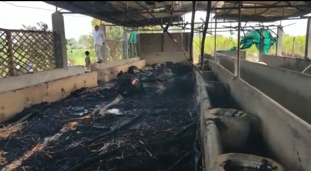 *તબેલામાં અગમ્ય કારણોસર ભીષણ આગ લાગતા 17 વધુ પશુઓના મોત.
