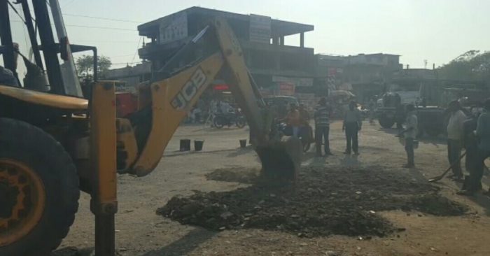 નેત્રંગ ચારરસ્તા ઉપરનાં એક-એક ફુટ ઊંડા ખાડા પુરવા તંત્ર કામે લાગ્યું.