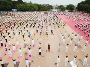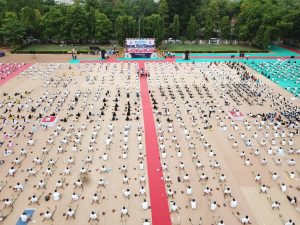 પંચમહાલ જિલ્લાના આશરે ૫ લાખ કરતા વધુ લોકોએ યોગાભ્યાસ કરીને વિશ્વ યોગ દિવસની ઉત્સાહભેર ઉજવણી કરી હતી. પંચમહાલ જિલ્લાનો જિલ્લા કક્ષાનો કાર્યક્રમ પોલિસ પરેડ ગ્રાઉન્ડ, ગોધરા ખાતે યોજાયો હતો. કાર્યક્રમની શરૂઆતમાં ખેલ મહાકુંભ- ૨૦૧૮માં જિલ્લા કક્ષાએ શ્રેષ્ઠ યોગ પ્રદર્શન કરનારા યોગવીરોનું કૃષિ, પંચાયત અને પર્યાવરણ મંત્રી જયદ્રથસિંહ પરમાર દ્વારા સન્માન કરવામાં આવ્યું હતું. આ પ્રસંગે ઉપસ્થિત યોગ પ્રેમીઓને સંબોધતા મંત્રીશ્રીએ જણાવ્યું હતું કે ભાગદોડથી ભરેલા આજના તણાવગ્રસ્ત જીવનમાં યોગ તંદુરસ્ત અને નિરામય જીવન જીવવાનો રાજમાર્ગ છે. તેમણે જણાવ્યું હતું કે તણાવો અને ચિંતાથી મુક્ત થવા તેમજ માનસિક અને શારીરિક સ્વસ્થતા મેળવવા માટે આપણે આસનો અને પ્રાણાયમને આપણી રોજિંદી દિનચર્યામાં વણી લેવા જોઈએ. યોગ દિવસે સરસ આયોજન કરવા બદલ જિલ્લા તંત્ર અને સ્વૈચ્છિક સંસ્થાઓને અભિનંદન આપતા તેમણે ઉમેર્યુ હતું કે યોગની પ્રેક્ટિસ આજના એક દિવસ પૂરતી મર્યાદિત ન રાખતા તેને નિયમિત જીવનશૈલી બનાવવાની આપણે જરૂર છે.