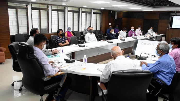 આરોગ્ય કમિશ્નરશ્રી જયપ્રકાશ શિવહરેના અધ્યક્ષસ્થાને ગોધરા ખાતે જિલ્લામાં કોરોના સંક્રમણની સ્થિતિ અને કામગીરી વિશે કલેકટરશ્રી અને જિલ્લા વિકાસ અધિકારીશ્રી સહિતના અધિકારીઓ સાથે એક બેઠક યોજાઈ હતી. કલેક્ટરશ્રી પાસેથી જિલ્લામાં હાલની સ્થિતિએ સંક્રમણના કેસો, અસરગ્રસ્ત વિસ્તારો, ડિસ્ચાર્જ રેટ, કેસો મળવાનો દર, ટેસ્ટ, કોન્ટેક્ટ ટ્રેસિંગ, બેડ સહિતની સારવારની સુવિધાઓ વગેરેની માહિતી મેળવતા કમિશ્નરશ્રીએ કોરોના સામેની લડાઈ લાંબી ચાલે તેમ હોવાથી તેને ધ્યાનમાં રાખી સંસાધનો અને વ્યૂહરચનાનું આયોજન કરવા પર ભાર મુક્યો હતો. સંક્રમણની શકયતા ઘટાડવા કન્ટેઇનમેન્ટ ઝોન અને બફર ઝોનમાં અલગ-અલગ ટીમોને કામગીરી સોંપવાના તેમ જ જિલ્લાના બધા ગામોને પલ્સ ઓક્સીમીટર આપવા સહિત તંત્ર દ્વારા લેવાયેલ પગલાઓ બાબત સંતોષ વ્યક્ત કરતા આગામી તબક્કામાં કેસો વધવાની સ્થિતિને પહોંચી વળવા જિલ્લાના તમામ મેડિકલ ઓફિસર્સ, ડોકટર્સને (કો-મોર્બીડિટી ધરાવતા ન હોય તેવા) કોરોના વોર્ડમાં રોટેશન અનુસાર ડ્યુટી સોંપી કોરોના દર્દીઓની સારવાર અને મેનેજમેન્ટમાં કુશળ બનાવવા તાકીદ કરી હતી. તે જ રીતે નવા કેસોની સંખ્યાના દરને ધ્યાનમાં રાખીને ઓક્સિજન સપ્લાય ધરાવતા બેડની સંખ્યામાં અને સારવાર કરી શકવા સક્ષમ સ્ટાફનું આયોજન કરવા સૂચના આપી હતી.શ્રી શિવહરેએ જણાવ્યું હતું કે સંક્રમણ સામે માસ્ક પહેરવા અને અન્ય વ્યક્તિઓથી અંતર જાળવવા સહિતની માર્ગદર્શિકાનું ચુસ્ત પાલન જ કેસોમાં મોટા વધારા સામે અસરકારક બની શકે તેમ છે તેથી કન્ટેઇનમેન્ટ સહિતના વિસ્તારોમાં આ નિયમોનું કડક પાલન સુનિશ્ચિત કરવું અતિ આવશ્યક છે. દર્દીની પ્રોફાઈલ અનુસાર કન્ટેઇનમેન્ટ ઝોન નિશ્ચિત કરવા સાથે વધુ સઘન કોન્ટેક્ટ ટ્રેસિંગ અને ડોર ટુ ડોર એક્ટિવ સર્વેલન્સથી કેસો બને તેટલા વહેલા શોધી કાઢવાથી દર્દીઓની સારવાર માટે પૂરતો સમય મળી રહેવા સાથે ઓછા લોકોને ચેપનો ભોગ બનતા અટકાવી શકાશે તેમ જણાવતા એન્ટીજન કિટ્સનો ઉપયોગ કરી હોટસ્પોટ વિસ્તારોમાં અને શંકાસ્પદ દર્દીઓમાં ટેસ્ટિંગ વધારવા કમિશનરશ્રીએ જણાવ્યું હતું. તેમણે સારવાર હેઠળ રહેલા દર્દીઓના યોગ્ય કાઉન્સલિંગ ઉપર ખાસ ભાર મૂકતા સિનિયર ડોકટર્સ અને અધિકારીઓને ટેલીમેન્ટરિંગ સેશન્સ એટેન્ડ કરવા તેમજ જિલ્લાના ખાનગી ડોકટર્સ સાથે સતત સંકલનમાં રહેવા જણાવ્યું હતું. બેઠકમાં કલેકટરશ્રીએ જણાવ્યું હતું કે જિલ્લામાં પી.પી.ઇ. કિટ્સ, ટોસિલિઝુબેમ, રેમડીસીવર સહિતની દવાઓ, ઓક્સિજન બેડસ, બાયપેપવાળા વેન્ટિલેટરસ પૂરતા પ્રમાણમાં ઉપલબ્ધ છે. જિલ્લાની સરકારી હોસ્પિટલમાં તબીબોની સંખ્યા ઉપરાંત ખાનગી હોસ્પિટલોમાં કોરોનાની સારવારના નક્કી કરાયેલ દરો અંગે પણ કલેકટરશ્રીએ માહિતી આપી હતી. બેઠકમાં જિલ્લા વિકાસ અધિકારીશ્ર