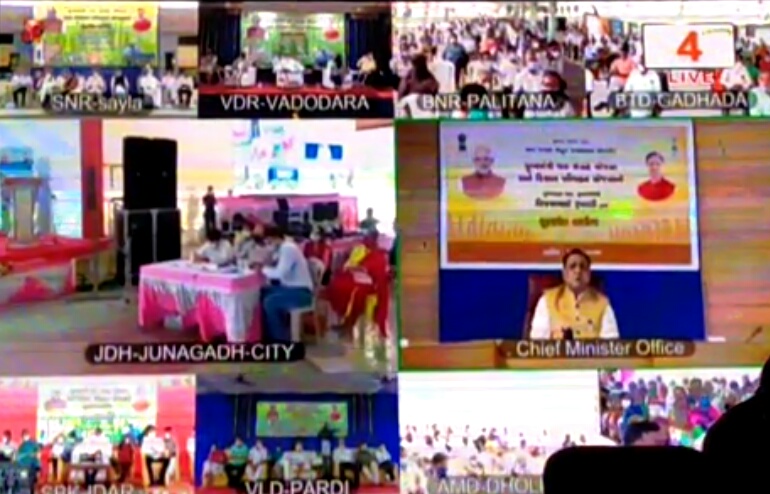 ગુજરાત સરકાર દ્વારા સાત પગલા ખેડૂત કલ્યાણના અંર્તગત મુખ્યમંત્રી પાક સંગ્રહ યોજના અને કિસાન પરિવહન યોજનાનો શુભારંભ કાર્યક્રમનું આયોજન કરવામા આવ્યું હતું. મુખ્યપ્રધાન વિજયરૂપાણી વિડીયો કોન્ફરન્સ દ્વારા ઉપસ્થિત રહ્યા હતા.