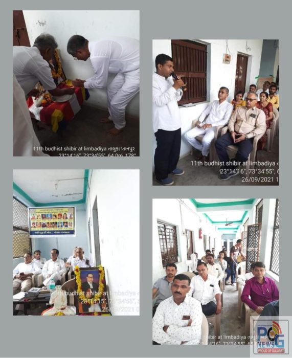 મહિસાગર જિલ્લાના ખાનપુર તાલુકાના લીંબડીયા ખાતે માનવ ધર્મના પ્રણેતા ગૌતમ બુદ્ધ તથા બોધિસત્વ ડૉ.બાબાસાહેબ આંબેડકરના વિચારોને આધિન ધમ્મ ચેતના શિબિરનું આયોજન કરવામાં આવ્યું હતું જેમાં બુધ્ધિષ્ટ અકાદમી ઓફ ગુજરાતના આયુ. રમેશભાઈ બેન્કર, આયુ. મિલિંદ પ્રિયદર્શી, જયંત વસુબંધુ, અમર સોલંકી, સી.કે.પરમાર તેમજ ચલો બુદ્ધ કી ઓર ટીમમાંથી ડૉ.દિનેશભાઇ પરમાર, પ્રોફેસર નરેશભાઈ વાઘેલા, આર.એફ ઓ વી.ડી. પરમાર ઉપસ્થિત રહ્યા હતા. બુધ્ધવંદના ત્રિશરણ, પંચશીલથી કાયૅક્રમની શરૂઆત કરવામાં આવી હતી મહેમાનોએ જુદા જુદા વિષયો પર વક્તવ્યો આપ્યા હતા. જેમાં તથાગત બુધ્ધ, ડૉ.બાબાસાહેબ આંબેડકર, સાવિત્રીબાઈ ફુલે અને આપણા મહાપુરુષોના વિચારોને આધિન બૌદ્ધિક વિચારો રજુ કરવામાં આવ્યા. ખાનપુર તાલુકામાંથી તેમજ અન્ય તાલુકા, જિલ્લામાંથી ધમ્મબંધુઓ ઉપસ્થિત રહ્યા હતા નિલાબેન એમ.એસ.ડબલ્યુ કોલેજ પરીવાર, સંસ્થાના માલિક નિલાબેન તથા નરેન્દ્રભાઈ સોલંકીનો ખુબ ઉમદા સહયોગથી કાર્યક્રમને સફળ બનાવ્યો હતો અંતમાં ધમ્મપાલનગાથા રજુ કરવામાં આવી. ધમ્મ ચેતના શિબિરમાં ઉપસ્થિત રહેલા તમામ ધમ્મબંધુઓનો આભાર વ્યક્ત કર્યો હતો.