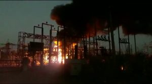 રાજપીપળા:તિલકવાડાના મેઈન રોડ પર જેટકો વિજ કંપની આવેલી છે જ્યાં અચાનક આ સબસ્ટેશનમાં આગ લાગી હતી,આગ લાગતા આધિકારીઓમાં દોડધામ વધી ગઈ પરંતુ સબ સ્ટેશનમાં ઓઇલ ભરેલા ડીપી ફાટતા આગે વિકરાળ રૂપ લીધો હતો.હાલમાં તો શોટ સર્કિટને લઈને આગ લાગી હોવાનું અનુમાન લગાવાઈ રહ્યું છે પણ વિકરાળ આગને લીધે સબસ્ટેશન બળીને ખાખ થઇ ગયું હતું.