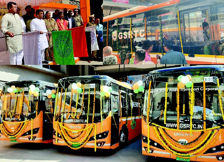 રાજકોટમાં પાંચ ઇલેક્ટ્રિક બસનું હર્ષ સંઘવીના વરદ હસ્તે લોકાર્પણ કરાયું.