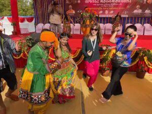 આ પતંગ મહોત્સવમાં રાજકોટના મેયર, સાંસદ, ધારાસભ્યો અને મનપાના પદાધિકારીઓ ઉપસ્થિત રહ્યા હતા. મેયર ડો.પ્રદીપ ડવે જણાવ્યું હતું કે, આજે રાજકોટ મહાનગરપાલિકા અને ગુજરાત સ્ટેટ ટૂરિઝમ વિભાગ દ્વારા રાજકોટ શહેરમાં આંતરાષ્ટ્રીય પતંગ મહોત્સવની ખૂબ ભવ્ય ઉજવણી ધર્મેન્દ્રસિંહજી કોલેજ ખાતે કરવામાં આવી રહી છે. 16 થી વધુ દેશ, ભારતના 7 રાજ્યોના 160થી વધુ પતંગવીરોએ પતંગ મહોત્સવમાં ભાગ લીધો છે.અલગ અલગ 16 દેશમાંથી આ પતંગ મહોત્સવમાં ભાગ લેવા આવેલા પતંગબાજોએ પતંગ ઉડાવી આનંદ માણ્યો હતો. તેમજ વિદેશી યુવતીઓ ગુજરાતની ઓળખસામા રાસ-ગરબા રમી હતી. જેમાં યુવતીઓ રંગબેરંગી છત્રી સાથે ગરબે ઘૂમી હતી.