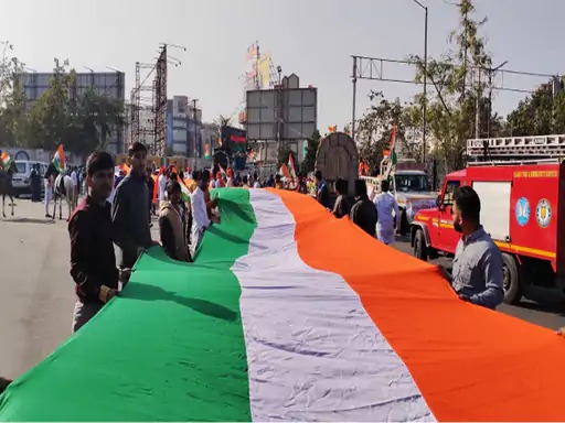 રાજકોટમાં ગણતંત્ર દિવસ નિમિત્તે 251 ફૂટ લાંબા રાષ્ટ્રધ્વજ સાથે બાલભવનથી રામનાથપરા સુધી તિરંગામય યાત્રાનું આયોજન કરવામાં આવ્યું છે, જેનું બાલભવનના મુખ્ય ગેટ પાસેથી યાત્રાનું પ્રસ્થાન થયું. એ વિવિધ વિસ્તારોમાં ફરી રામનાથપરા ખાતે સમાપન થયું હતું. આ યાત્રાનું મુખ્ય આકર્ષણ ભારત માતાનો ફલોટ, શહીદ કુટીર તથા 251 ફુટ લંબાઈ ધરાવતો રાષ્ટ્રધ્વજ હતું. નોંધનીય છે કે આ કાર્યક્રમમાં ભારત માતાનું કુમકુમ, ફૂલ દ્વારા પૂજન કરવામાં આવ્યું હતું.