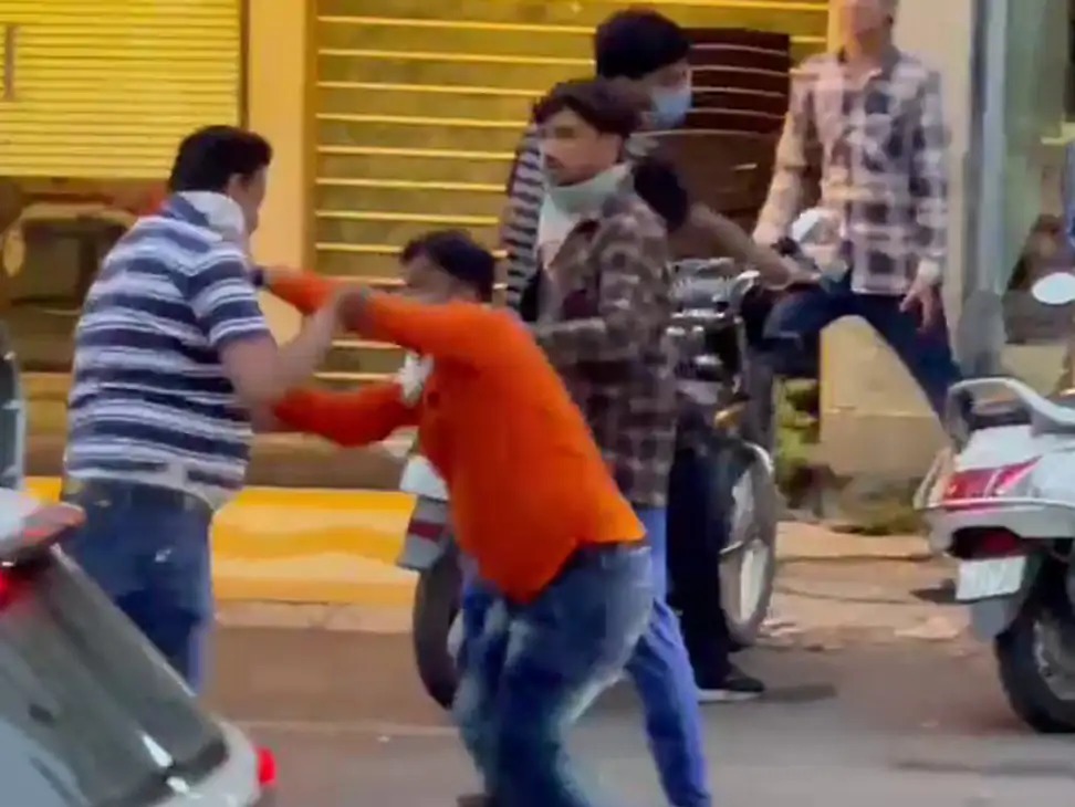 રાજકોટના પોશ ગણાતા યાજ્ઞીક રોડ પર ત્રણ યુવાનો વચ્ચે મારામારી થઈ.
